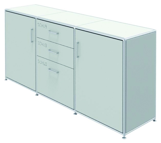 2 Türelementen je mit 1 Fachboden. Mittelelement mit 3 SchübenB 176,6 | T 43,2 | H 80,8 cm