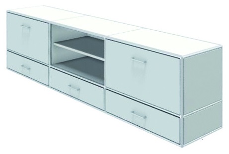 2 Klappen und 3 Schubladen. Mittelelement mit 1 verstellbaren FachbodenB 236,6 | T 43,2 | H 61,6 cm