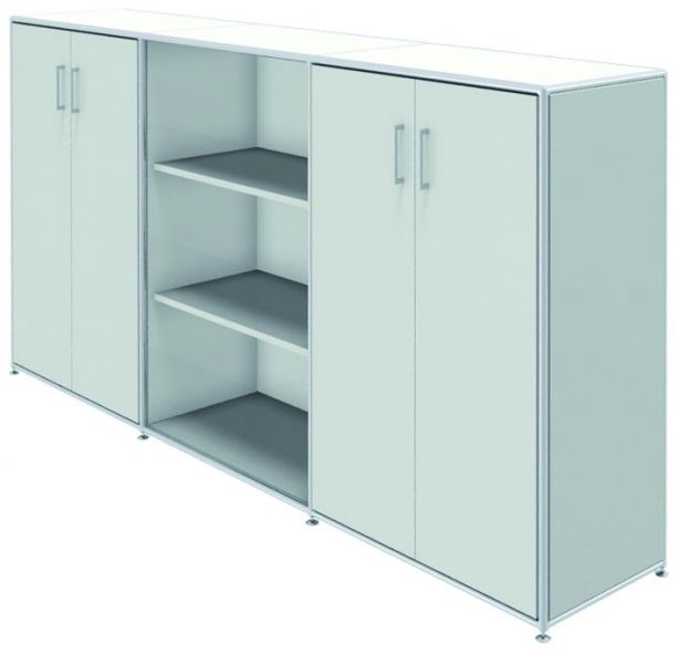 Außenelemente je mit 1 Doppeltür. Mittelelement offen. je mit 2 verstellbaren FachbödenB 236,6 | T 43,2 | H 119,2 cm