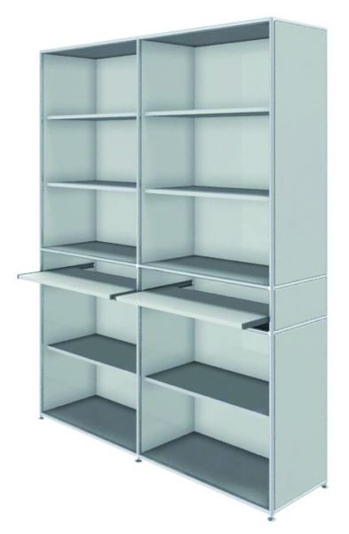 Offenes Regal mit je 4 Fachböden und mittig mit Auszugsböden zur OrdnerablageB 236,6 | T 43,2 | H 215,2 cm