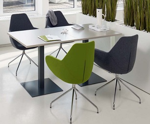 Die Tischvariante Basic ist für Besprechungen, Aufenthalt und Teamgespräche gedacht. Es gibt ihn in 7 verschiedenen Ausführungen. Von runder Form der Tischplatte mit Rundsäule über Klapptische mit Kufengestell bis hin zu Sitz und Stehtische. Es stehen 13 verschiedene Kunsstoff-Dekore zur Verfügung. Die Oberflächen werden mit gleichfarbigen PP-Kanten kombiniert. Furnierte Oberflächen können in verschiedenen Holzarten bestellt werden. Als Standard zählen Esche und Buche in verschiedenen Beiztönen, sowie Ahorn und Europäisch Kirschbaum.