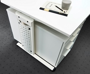 Funktionselemente gehören als seitliche Anbauplatte / seitliches Anbauelement für Drucker, CPU-Halterung zur Befestigung seitlich oder unter dem Tisch zum Standardangebot.