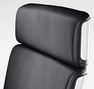 für die längeren Konferenzen die hohe Rückenlehne mit Kopfstütze in feinstem Leder.